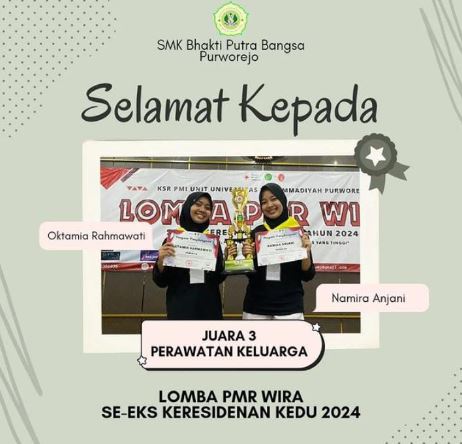 SMK Bhakti Putra Bangsa Purworejo bangga dengan berbagai prestasi gemilang yang diraih oleh siswa baik di tingkat daerah maupun nasional. Dari kompetisi akademik hingga lomba keterampilan kejuruan, setiap pencapaian mencerminkan dedikasi, kerja keras, dan semangat juang keluarga besar sekolah kami. Prestasi ini menjadi bukti nyata kualitas pendidikan yang kami berikan untuk mempersiapkan siswa meraih masa depan yang cerah.